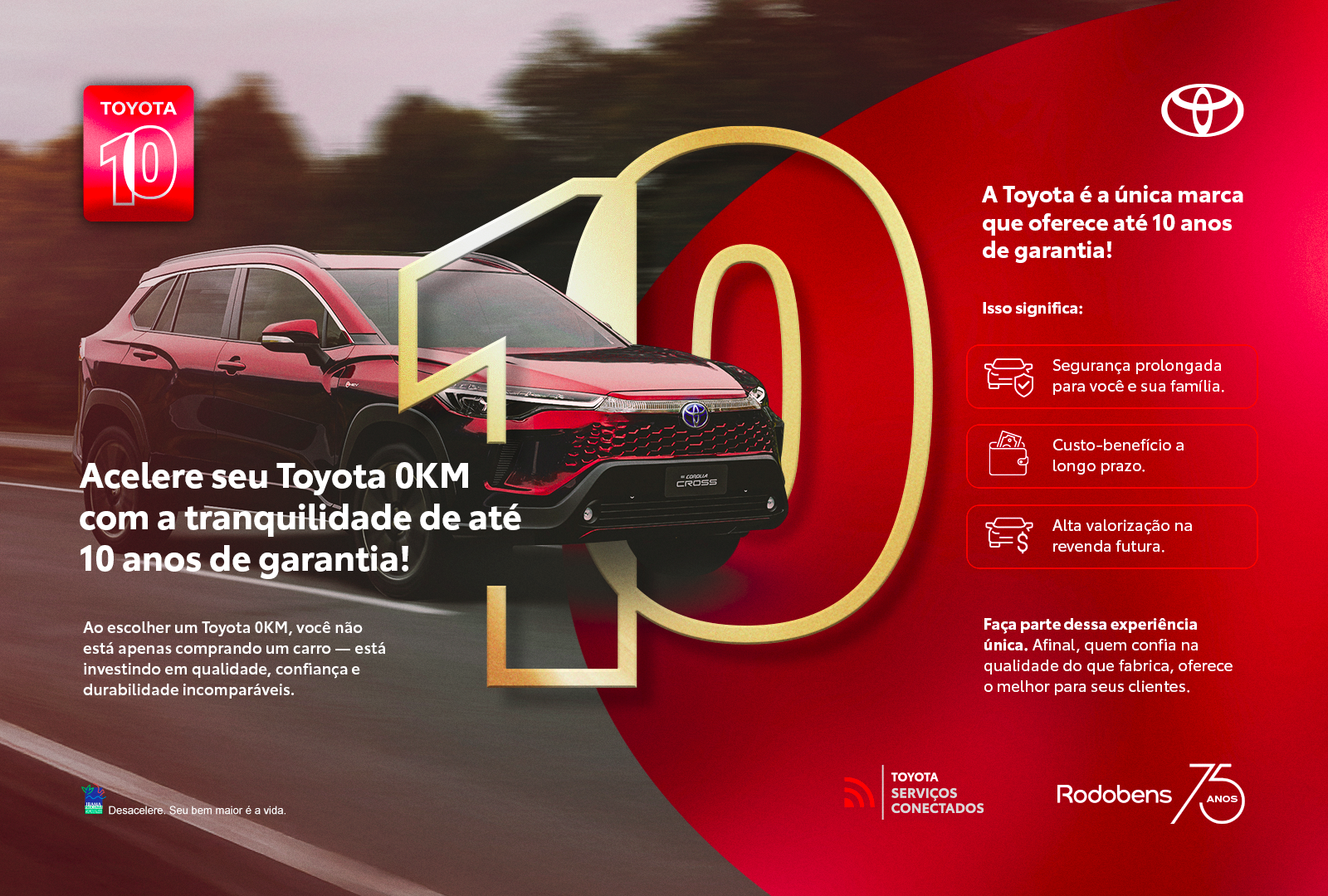 Ativação gratuita: A Garantia Toyota 10 é totalmente sem custo para veículos fabricados a partir de 2020.